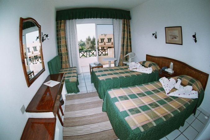 в 7 км от аэропорта Шарм-Эль-Шейх, в заливе Naama Bay, на второй линии от моря. 2-х этажное здание: 105 standart rooms (макс. 2+2 человека), 2 suites, 12 вилл. Сейф ы reception - бесплатно.В номере: